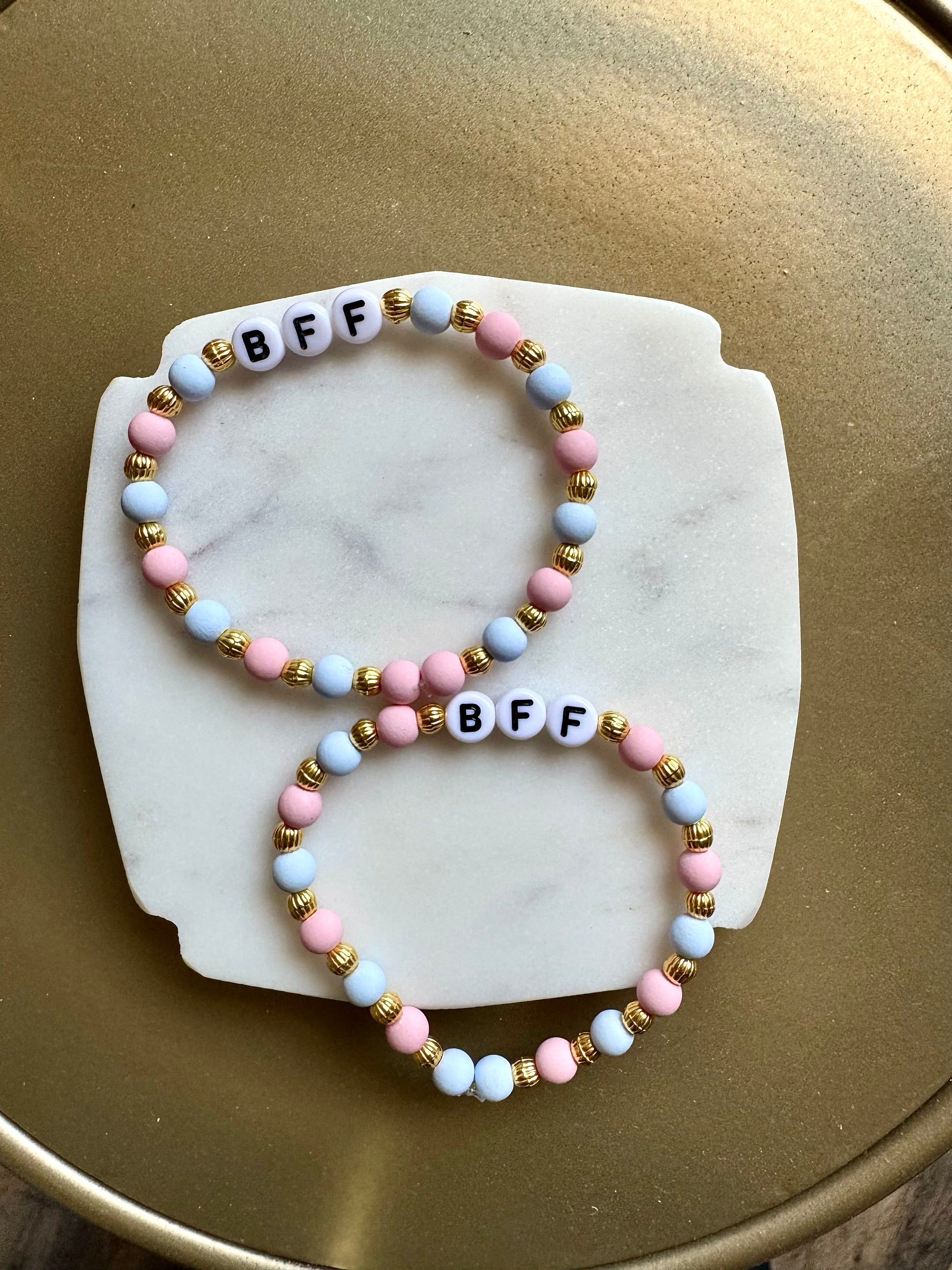 Celebrate your friendship with this set of alternating color BFF bracelets! Each set comes with 2 bracelets, featuring a stylish mix of pink and blue colors. Perfect for you and your bestie to wear and show off your special bond in a fun and fashionable way!